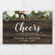 Anpassa de här vin---märkena för ditt bröllop... blommigt mini-mousserande. Konstruktionen har vattenfärgsmörjmedel och vita blommor med strängarna ljus och en mörk lada-bakgrund med ett modernt typsnitt. Mönster är platt tryckta illustrationer/grafik - INTE FAKTISKT GOLD FOIL.