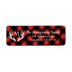 Rustiska adressetiketter i chic med en vit land hjort antlers silhuett som omger familjens monogram brev i vitt. Bakgrunden är utskrift av fet buffelkontroll.