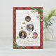 Den här designen är perfekt för alla familjer som tittar att skicka ett unikt och speciellt julkort till sina nära och kära. Den här konstruktionen har en ram av rött och guld som är täckt med en rustik, vit träbakgrund. I mitten finns triangelformen av ett Julgran som består av guld-stjärnor och ramar som innehåller dina familjefotografier. I hörnen är vackert festive grenar, och vid grund är hälsning i ett sött skript.