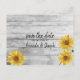 Snyggt och land, detta vykort för Rustic White Wood och Sunblommor Bröllop spara datum är det perfekt sättet att informera alla dina vänner och familjer om ditt kommande landsbyggsbröllop i vår eller sommar. All typografi är anpassade för att passa behoven i bröllopsdagen firande.