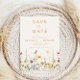 Med den här designen kombineras elegans och stollig, och minimal modern text paras ihop med en rad delikata perfekter av vildblommor för boho-inspirerat bröllop.
