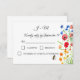 Gör din planering i bröllop enklare och vackrare med vår Wildblomma Watercolor-poppies och Cornblommor-OSA kort. Svarskorten har en fantastisk blandning av nyanser och kornblommor i mjuka vattenfärgsnyanser och ger dig en unik blommigt på bröllop-skrivbordet. Perfekt för par tittar för ett naturinspirerat, biologiskt eller rustiskt tema. OSA kort kommer att göra det möjligt för dina gäster att svara i stil. Elegantens utformning, med dess känsliga vildblommor, parar vackert med alla bröllopsinbjudningar, och anpassadets layout gör att du kan lägga till din händelseinformation och begära svar från dina gäster. Oavsett om du är värd för en intim sammankomst eller ett stort firande, är den här blommigt OSA kort ett charmerande sätt att behålla reda på din gästlista samtidigt som du lägger till en personlig beröring till din korrespondens från bröllop. De här vattenfärgspepisarna och OSA kort av kornblommor är ett perfekt komplement till din blommigt bröllop-stationär, och de har utformats omsorgsfullt och designat för att matcha dina bröllop-estetiker. Gör din speciella dag ännu mer minnesvärd genom att skicka dessa vackra svarskort för personligen till dina gäster.
