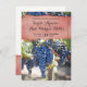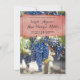 En modern bröllopsinbjudan med en vattenfärg fläckar vin mot ett foto av hängande vindruvor med lustiga lila druvor. Namn från bruden och brudgummen är i ett vackert skript. Anpassa med din information. Information om osa på baksidan av inbjudan.