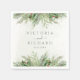 Vackra bröllop-blöjor med handmålade botaniska vattenfärgillustrationer av vintergröna, gräs och grisen grenar, koner och häckbär. Valet av perfekt för vinter eller jul helgdag kallat bröllop.