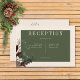 Vi presenterar vår fantastiska mottagningskort för vinterbröllop, där tidlös elegans möter säsong. Rikens krämbakgrund, som är artificiellt plågad med mjuka vita accenter, anger en fängslande ton för din speciella dag. I textområdet mörk sage grönt kommer dina bröllopsmottagningsdetaljer att skina, omgivna av en delikat ljussken grönt ram som tillför lite förfining. Förbered vintern med en brinnande vindruta av lush grey, som är fylld med rik röda bär, mistletoe med dess ömtåliga vita bär och den tidlösa gallringen av grönt gräs. Den här vintern fångas säsongens innersta väsen av underjordsininspirerad design, och dina gäster inbjudningarna att fira kärlek i en miljö där man utstrålar naturlig ära och festlig charm. Med den här designen kan du säkert ställa in scenen för ett firande fyllt med kärlek och glädje. Förbered vintern och låt bröllop vara en återspegling av den skönhet som denna säsong ger. Det är en del av Rustic Winter Berries & Gräs Cream bröllop svit. Skapat av Farmhouse Press.
