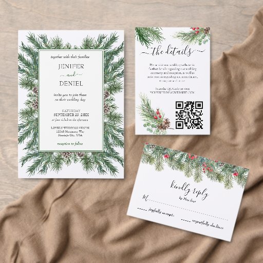 Rustic Winter Berry Gräs Greenery Bröllop Inbjudningar