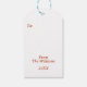 Rustik märkre, gåva med ett par botaniska arrangemang med vild blommor, svamp, gräs träd löv, höst löv och ett buzzingbin. Anpassningsbar röd God jul-typografi längst fram och personlig till och från text längst bak i märkrn för gåva.