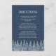 Direction card inserts for your rustic winter wedding with a country snow covered forest at night in navy blue and white. Customize these cards with your wedding directions, accommodations or other information to be included with your wedding invitations, also perfect for anniversary parties or birthday parties. Available in a wide range of matching wedding products.