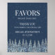 An elegant sign for your favors table at your rustic winter wedding with a snow covered forest at night in navy blue and white.
