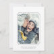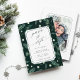 Den här inbjudan till bröllop spara datum innehåller information om evenemanget i chic grönt med ett brev med biljett ram på en vinter-grön mönster-bakgrund och ett foto på baksidan. Om du vill ha en mer avancerad anpassning av den här designen klickar du på BLUE DESIGN VERKTYG för att ändra teckensnitt, storlekt, färg etc.