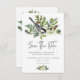 Grattis till kärlek med vinterskönheten. Vårt naturinspirerade bröllop spara datum-kort har en delikat vattenfärgbukett av rustiskt gräs, pinekoner, mistel med vita bär, dammiga blå naglar och en mjuk aning av ferns - som fångar säsongens tysta magi. En graciös grått och vit fågel går försiktigt över dina bröllop-detaljer, och lägger till en romantisk, skogskarm. Avslutat med ett rent, modernt teckensnitt ger den här designen elegans och värme till din speciella dag. Perfekt för ett vinterbröllop fyllt med naturlig . Skapat av Farmhouse Press.