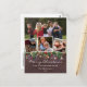 Rustic vintage christmas-vykort för helgdag med en mörk träbakgrund, foton av dig och din familj, festive julgran grenar, red & guld träd dekorationer och Strinkle ljus. Fotografi © Storytree Studios, Stanford, CA