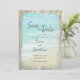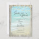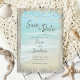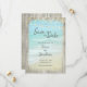 Rustic wood ramar är ett strandfoto där vågarna kraschar på stranden. String ljus pekar på toppen. Elegantens penselskript talar om Spara datum, med enkel personlig ge information om ditt framtida bröllop-datum.