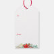 Rustic Wood Blommigt Cactus Juletiketter med en tuff sydvästra Saguaro Cactus med en botanisk helgdag blomning av poinsettias och holly på en vit träbakgrund.