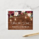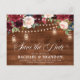 Rustic land wood blommigt boho bröllop spara datum-kortet har handmålad blommigt för vattenfärg / ro i rik av Burgundy, Marsala Red navy blue och rosa / persim och charming av stil-teckensnitt med träbakgrund String ljus mason burk och snöre. Kontakta mig om du behöver hjälp med anpassning eller om du behöver någon annan produkt med den här designen.