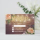 Bröllop OSA-svarskortsmallar - Elegant Guld-skript med Peach Vit ros Blommigt och String Ljus på Rustic Wood Background. En Perfekt för din stora dag! Alla textstorlekar i Stil, Färg kan anpassas efter dina behov.