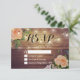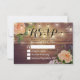 Bröllop OSA-svarskortsmallar - Elegant skript med Peach Vit ros Blommigt och String Ljus på Rustic Wood Background. En Perfekt för din stora dag! Alla textstorlekar i Stil, Färg kan anpassas efter dina behov.