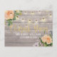 Postkortsmallar för bröllop Tack - Faux guldskript med Peach Vit ros Blommigt och String Ljus på Rustic Wood Background. En Perfekt för din stora dag! Alla textstorlekar i Stil, Färg kan anpassas efter dina behov.