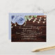 Brevkort för rustisk mörk förlovningsfest av brun trä med blommigt av ytterskålsblå vattenfärg och ljus med tvillingsträng. Kontakta oss om du behöver hjälp med att anpassa eller matcha produkter.