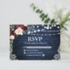 Rustic Bröllop Blue Wood String Ljus Snöre Watercolor Burgundy Blue Blommigt OSA kort