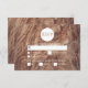 Den här konstruktionen har en rustik träbakgrund. Den enkla bruna träbakgrunden kompletteras av den vita texten och den moderna rena mittcirkeln inslag som omger titeln. De bruna tonerna i träkornen skapar ett land-skogsodlingens rostbildning. Utformning av acceptkort för elegant bröllop med modernt inslag. Det finns också möjlighet att matcha bröllopsinbjudningar och andra artiklar i kontorsartiklar.