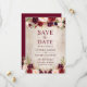 Rustic Wood Burgundy Red Blommigt Bröllop Spara Datumet