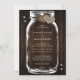 Rustic Wood Burlap Hearts Mason Burk Bröllop Inbjudningar