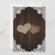 Rustic landsbyggsbröllop sparar datumkortet som innehåller burlap-hjärtan på en lada-träbakgrund som dekoreras med vit blommigt snöre och sträng ljus.