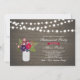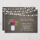 Fira din speciella dag med den här snyggtens överraskningsinbjudan. Den här designen har ljus, höstblombouquet med en mason burk på en rustisk träbakgrund. Paletten i färg är röda och lila. Du kan anpassa texten till alla händelser.