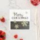 Rustic Wood God jul Snowflake Helgdagars Napkin. En God jul-text i modern typografi, festive snöflingor och en rustik mörk-träbakgrund struktur. Modern perfekt och snyggt för utformning av jultid för helgdag. Perfekt till jul party med dina vänner och din familj.