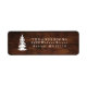 Lägg till en adressetikett för Rustic Wood Grain-helgdag genom att lägga till en adressetikett för anpassningsbar till din Julhälsningar. Julens adressetiketter har en mörk träbakgrund, vit gräs träd och platshållare för ditt namn och adress.