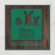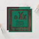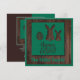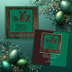 A rustic Easter greeting card featuring a wood-textured background. It showcases a charming green cutout design with silhouettes of an Easter egg, two bunnies and a happy easter typography. The card can be personalized with the message of your family name and greeting at the back.