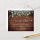 Spara datumet! Meddela bröllop till vänner och familj med den här budgeterade skoj och eukalyptus spara datumkorten. Dessa inbjudningskort för budgetbröllop har ett kuvertalternativ. Anpassa med namn, bröllop datum, plats. Lägg till annan information på baksidan. Dessa unika gröna sparor i bröllop kommer att ge ett bestående intryck, era gäster kommer att spara datumet! COPYRIGHT © 2020 Judy Burrows, Black Hund Art - Med alla Höger reserverade. Rustic Wood Greenery Budget Bröllop spara datum