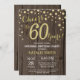 Överraskad 60:e födelsedagsinbjudan med Rustic Wood och Guld Glitter Diamond Background. Land Vintage Retro. Konfetti Guld. Vuxen födelsedag. Manliga Manar eller Kvinnor födelsedag.