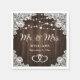 Dekorera er strålande bröllopsfest med den romantiske Mr. och Mrs. bröllop pappra blöjor som innehåller sinsemellan mot en rustik träbakgrund som är försedd med elegant blommigt snöre och sträng ljus.