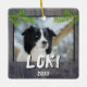 Rustic Wood Hund Pet Photo jul Keepie Ceramic Ornament. Mörkens träbakgrund med grönt gräs grenar. Lägg till ditt husdjur namn, år och foto. Söt jul-helgdag för ett hundägare.