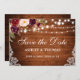 Rustic Wood String Ljus Snöre Watercolor Burgundy Blommigt Spara datumkortet