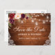 Rustic Wood String Ljus Mason Burk Snöre Watercolor Burgundy Blommigt Spara vykortet - utskrivet bakåt