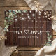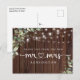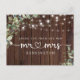 Rustic Wood String Ljus Eucalyptus Grey Bröllop Tack Post Cards med en bakgrund av rustiskt trä med tvillingsträngar av ljus och mjukt botaniskt grönt i hörnen. Tack från den nya Mr. och fru är utskriven i elegant, men ändå är det en ren typografi, skapar det här perfekten för er boho, bondehus eller landsbyggsbröllop tackkort! Kontakta oss på cedarandstring@gmail.com om du behöver hjälp med designen eller matchande produkter.