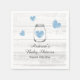 Rustic wood Mason burk pojkens babydusch party Napkins. Anpassad design med vit kornskiva av trä och små avglidna hjärtan i lätt pastellblått färg. Elegant-manustypografi med söta kärlek-symboler och rustik mason burk teckning. Trendig land chic stil formger för firande med nyfött barn. En del av matchande samlingssviten, inklusive vackra kuvert och mycket söt dekorationer.