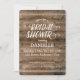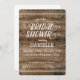 Rustic Land Inbjudningskort för möhippan. Trä och vita skript.
