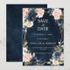 bröllop spara datum-kort för marin blå blommigt i mörk med elegant av marinblått, royal blått, vitt, ro och sage grönt eucalyptus löv och elegant glitter neutralt ram. Kontakta mig om du behöver hjälp med anpassning eller om du behöver någon annan produkt med den här designen.