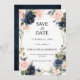 bröllop spara datum-kort för marin blå blommigt i mörk med elegant av marinblått, royal blått, vitt, ro och sage grönt eucalyptus löv och elegant glitter neutralt ram. Kontakta mig om du behöver hjälp med anpassning eller om du behöver någon annan produkt med den här designen.