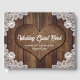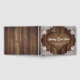 Elegant bröllop gäst bok inspirerades av ett spränghjärta på en träbakgrund med vit blommigt snöre. Perfektens val för en romantisk, rustisk bröllopsfest.