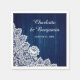 Dessa minimalistiska, men ändå elegant, bröllop-pappra blöjor med vintage vit blommigt snöre på en marin blå träbakgrund är perfekt för din marinblå, roliga land/ladubröllopsfest.