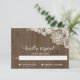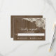 Rustiskt modern utformning utomhus med elegant snöre inslag överst och grund på en tryckt faux wood struktur baksida. En elegant- och snyggt, perfekt för bröllop som är temat för utomhusbruk eller vintage! Denna formgivning ingår i en bröllop-svit "Rustic Wood and Snöre". Matchande objekt är tillgängliga. Klicka på knappen CUSTOMIZE IT för att anpassa typsnitt, flytta texten och skapa din egen unika inbjudan av typen one-of-a-natura-modell.