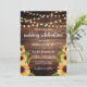 Rustic Wood and Sunblomed themed bröllopsinbjudningar i ett sans serif- och calligrafiskt teckensnitt för den vintagen och den lekbara gulten i bröllop. Fler produkter på den här samlingen.