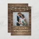 Fotot från bröllop är accentuerat med bakgrund av rustik, land, brunört träplank och mjuk gult, ljus tillsammans med titeln KÄRLEK & THANKS och ditt bröllop-datum i ett westernt land-tryckt teckensnitt och ditt namn i ett krypstil. Kortets baksida har samma baksida av trämjölken och ger ett ställe som skriver ett allmänt tackmeddelande (eller tar bort provtexten för att lämna tomt för personligt, handskrivet tack). PHOTO TIP: För snabbaste/bästa resultat väljer du ett foto med subjekt i mitten och/eller före skörd till en kvadratisk form FÖRE uppladdning och fyller i fotoutrymmet perfekt. Kontakta designern om du vill ha någon anpassning eller koordinering.