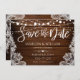 Rustic Wood och String Ljus Snöre Bröllop Spara Datumet