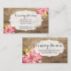 Rustic Wood & Painting Rosa Hibiscus Flower Land Visitkort